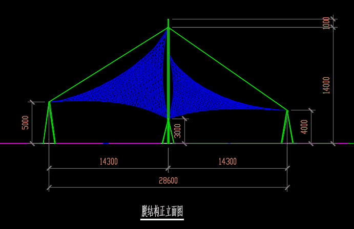 膜結構作為一種新型建筑形式,所用的材料和技術均不同于傳統結構。膜結構以造型學、色彩學為依托,可結合自然條件及民族風情,根據建筑師的創意建造出傳統建筑難以實現的曲線及造型。膜結構的特點要求在方案設計時考慮結構的可行性與美觀性相結合,根據現場條件與客戶需求,設計出美觀實用的膜結構造型。